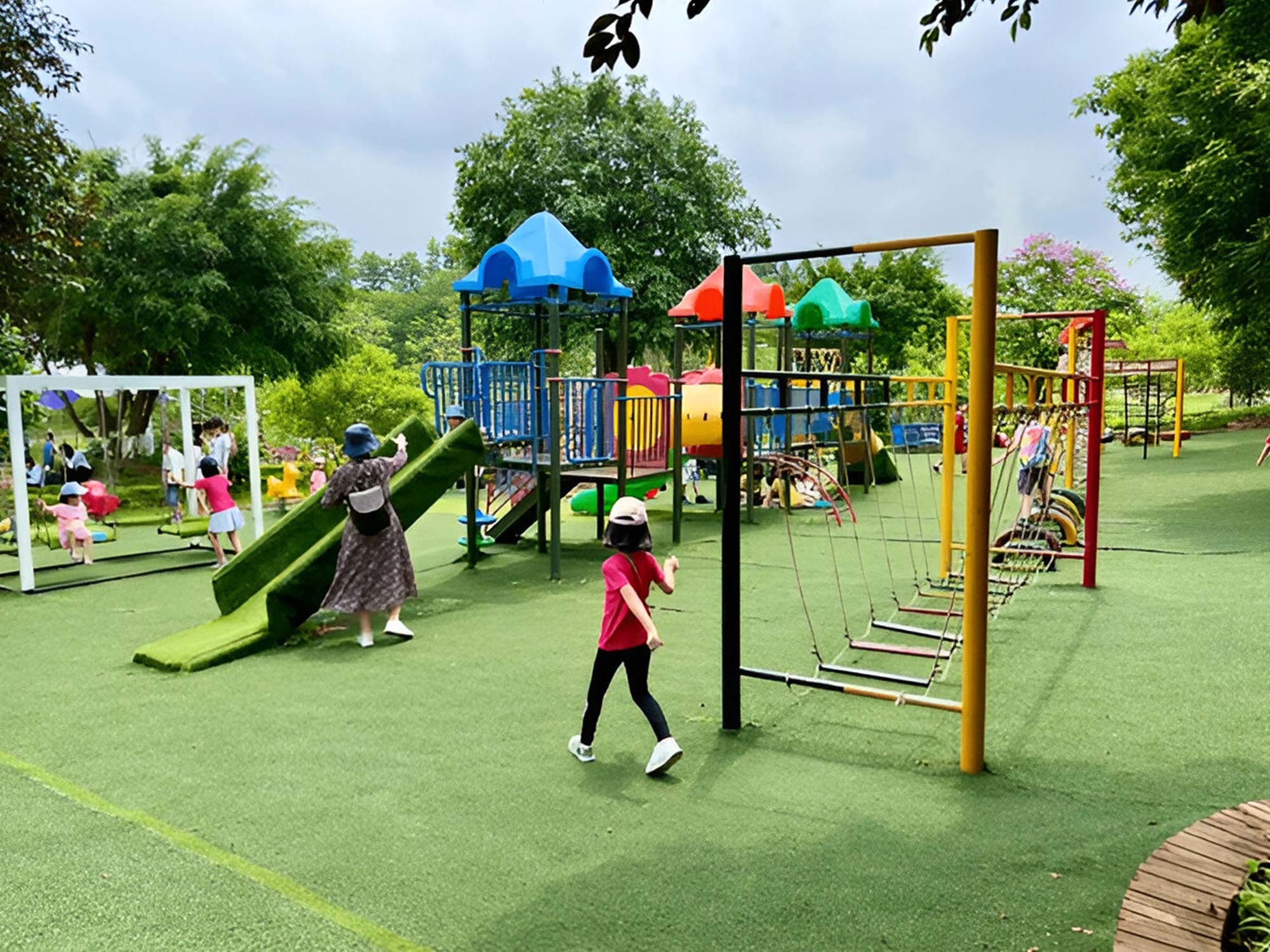 • Garden with raised lawn and a dedicated play area for children.